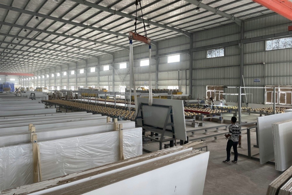 柬埔寨高金石有限公司是由福建磐珉新材有限公司于2019年11月在特區(qū)設(shè)立,主要生產(chǎn)可應(yīng)用于住宅和商業(yè)室內(nèi)裝飾的環(huán)保石英石板材產(chǎn)品,包括廚房臺(tái)面、浴室臺(tái)面、辦公桌、墻板等,項(xiàng)目分二期建設(shè),目前一期投資1000萬美元,建筑面積24000平方米,員工230人,年出口1800多萬美元;二期計(jì)劃擴(kuò)建用地28000平方米。