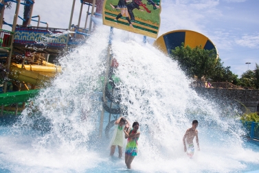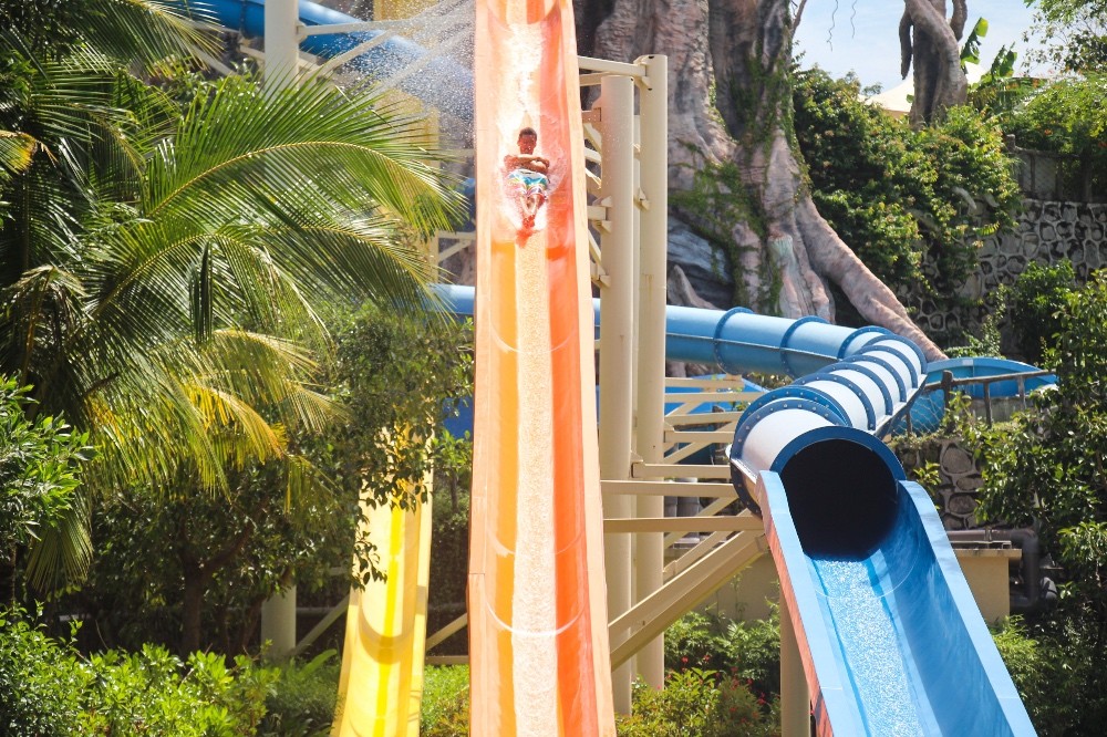 樂園目前配備12套大型游樂設(shè)施,近百條戲水滑道。其中包括垂直距離高達(dá)28米、下滑角度70°的國內(nèi)頂尖心跳滑道——尖峰時速;長達(dá)1350米、詮釋雨林故事的休閑漂流項(xiàng)目——雨林漂流;面積16000平方米、海嘯浪可高達(dá)3米的造浪池項(xiàng)目——颶風(fēng)海嘯及歡樂海岸;被稱之為“亞洲奇跡“的長280米的超長水上過山車——水上飛龍。