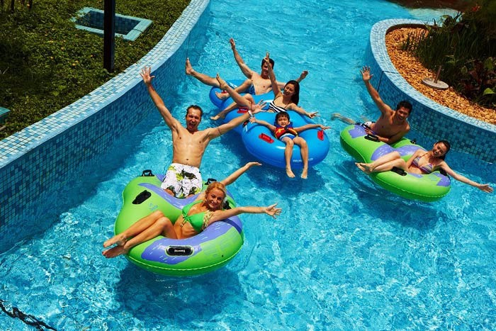 · 漂流河,長度約700米,你只需要躺在特別設(shè)計(jì)的浮圈上沿河漂流放松自己就行,非常悠閑的一項(xiàng)體驗(yàn)。