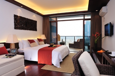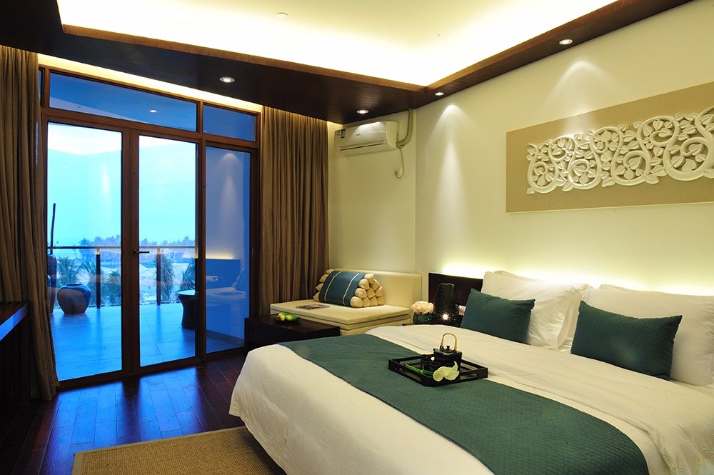 酒店雙子樓波浪的外觀造型和大海完美融合,目前共計有500多間客房。有雅致雙/大、海景雙/大、豪華海景雙/大、家庭房、豪華海景家庭套房、豪華行政海景套房等6種房型,客房的特色除了面積大、有陽臺、有浴缸、衛(wèi)生間干濕分離,就是5層以上每一間客房的陽臺都能看到博鰲的海岸線,性價比高。