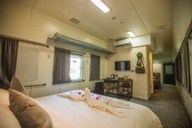東方紅火車主題酒店由3列27節(jié)綠皮火車車廂組成,來自長春、沈陽等北方城市的綠皮火車經(jīng)過著名設(shè)計師的改造已經(jīng)成了國內(nèi)為數(shù)不多的火車主題酒店,一共73間火車客房和1個火車餐廳。酒店以橫鋼50年代金千鐵路舊址作為切入點,利用火車枕木鋪設(shè)人行游步道,結(jié)合溫泉,形成了真正的VIP溫泉客房。走進(jìn)綠皮火車,你會發(fā)現(xiàn)原先的車廂已經(jīng)被很好地設(shè)計成了宜居的客房,書桌、衛(wèi)生間、電視、暖氣一應(yīng)俱全,還能在墻上看到年代感的背包/水壺/帽子的裝飾。