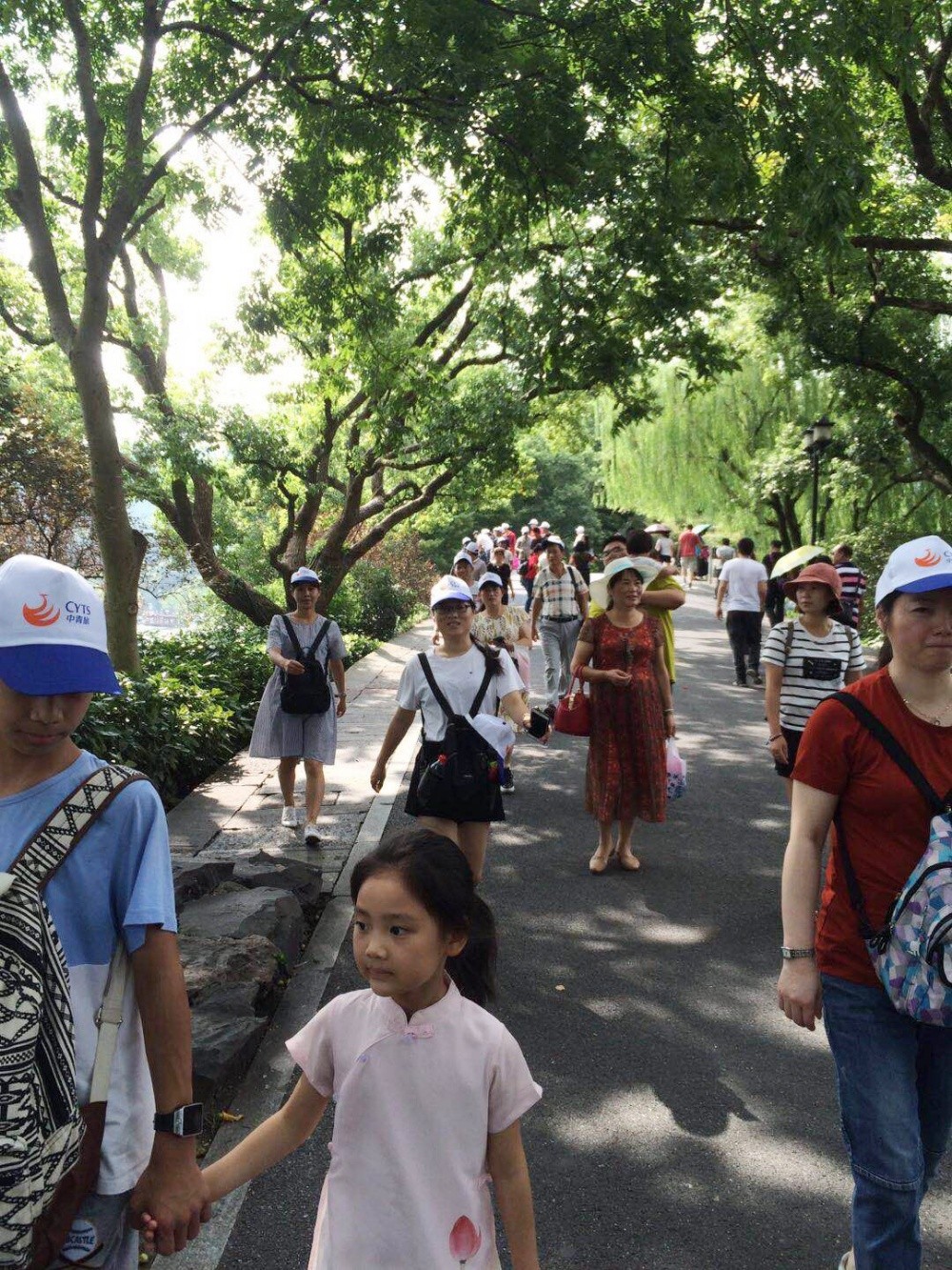一下車,大家漫步來到了西湖邊,走在蘇堤上,紛紛感慨:西湖不愧是人間天堂啊!整個(gè)一座湖就像一面大鏡子,倒映著湖邊的美景,照出了大家歡樂的心聲。湖堤兩岸長(zhǎng)滿了柳樹,柳樹依舊像春天那樣充滿著蓬勃的生命力,枝條長(zhǎng)得已經(jīng)垂到了湖面,宛如一個(gè)美麗的少女正在清洗她那長(zhǎng)長(zhǎng)的黑發(fā),微風(fēng)乍起,柳枝擺動(dòng),仿佛是風(fēng)在彈奏悠揚(yáng)的豎琴,也仿佛在歡迎我們恒森一家人的到來。在這如此美的景色下,有的員工拿出手機(jī)拍照留念,有的員工結(jié)伴倚在湖邊的長(zhǎng)凳上,相互聊天拉家常。