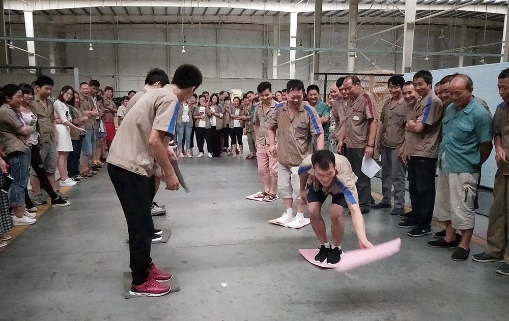 隨著一聲“比賽開始”的口令,大家熱情高漲,隊員們齊心協(xié)力,奮力拼搏,有些隊剛開始有點緊張,所走路線成彎曲狀,后來,在大家從旁提醒,順利到達(dá)終點。有些隊吸取經(jīng)驗,通過簡單的交流和溝通戰(zhàn)略技巧,比較順利。相比而言,后面的組明顯比前面的組速度快。在整個比賽過程中,里料車間團(tuán)隊協(xié)作的能力和靈活的戰(zhàn)術(shù)配合比較好,本著“友誼第一、比賽第二”的精神,經(jīng)過激烈角逐,里料車間以2分25秒完成了60米“搭橋過河”獲比賽第一名,包裝車間獲得第二名,技術(shù)部獲得第三名。