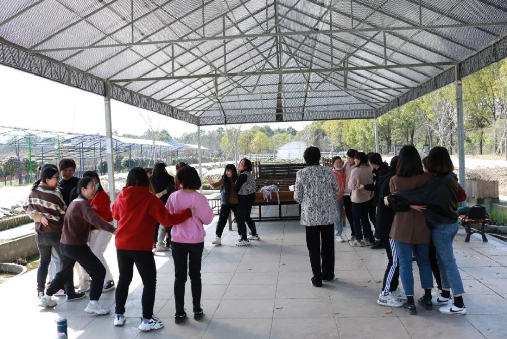 最后玩起了一種令人難忘的游戲,大家圍成一圈慢跑后,當聽到報數(shù)人喊數(shù)字口令后,隊友們立即按該數(shù)字抱成一團。結(jié)果很多人手忙腳亂,有的找到了伙伴,也有的不是三個人抱在了一起,就是沒有朋友的,哈哈!