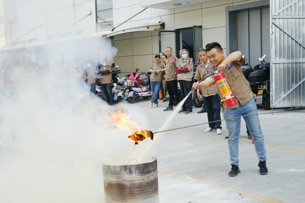 公司安全員和專職消防員分別從安全紀律、火警處置、滅火器使用等常規(guī)性知識對全體在場員工作了宣講和指導。