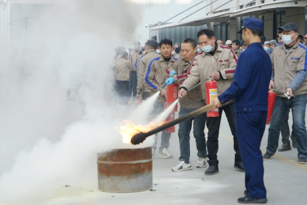 員工代表進(jìn)行滅員工代表進(jìn)行滅火器使用實(shí)操,尤其是對新近入職員工,要求每人必須當(dāng)場操作,確保人人會用滅火器。