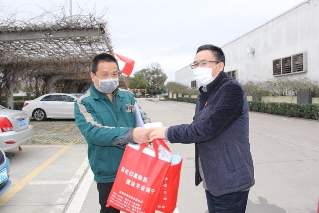 當(dāng)前,抗擊新冠肺炎疫情正處于關(guān)鍵時(shí)刻,各家企業(yè)陸續(xù)迎來(lái)復(fù)工復(fù)產(chǎn)。2月15日,斜橋鎮(zhèn)黨委書記洪國(guó)清和黨委委員、副鎮(zhèn)長(zhǎng)潘曉國(guó)專程到我集團(tuán)股份二區(qū)工廠慰問調(diào)研,了解企業(yè)的開復(fù)工情況和碰到的一些問題,送上了1000只醫(yī)用口罩和2把測(cè)溫儀。