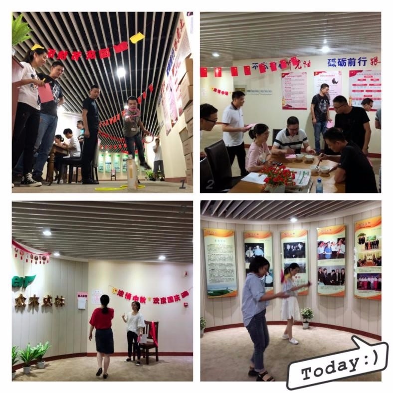 扔圈套寶其實就是我們常說的套圈,每人10個圈套中幾個得幾分,一開始大家看這圈這么大,以為不難,套了才發(fā)現(xiàn)難度還真不小。不過套著套著手感就來了,最多的套了8個。海底撈月也就是夾彈珠,只聽那邊一直傳來誒呀誒呀的聲音,怎么平時靈活運用筷子的我就是夾不住這個小小的彈珠呢,惹得旁人哈哈大笑。最厲害的要數(shù)信息中心許經(jīng)理了,連著踢了26個毽子,這讓大家目瞪口呆,不僅踢得多,人家踢得還是花式毽子,果然東北漢子多才多藝。