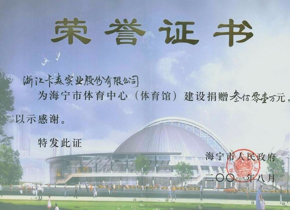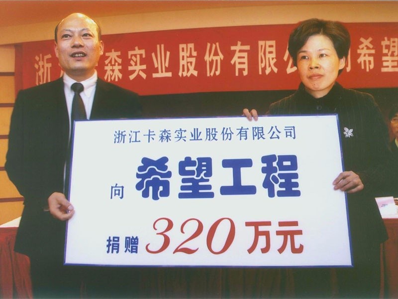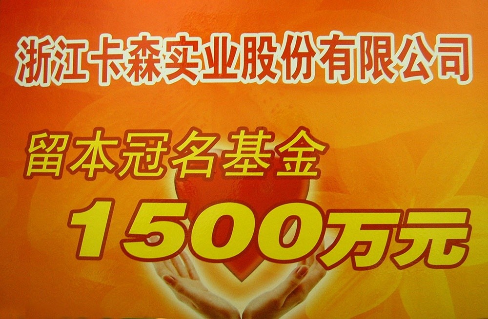 ▲ 2007年,海寧市創(chuàng)建慈善基金,集團(tuán)設(shè)立卡森留本冠名基金1500萬元,至今累計(jì)捐贈(zèng)545萬元,用于助困、助學(xué)、助教、助殘;