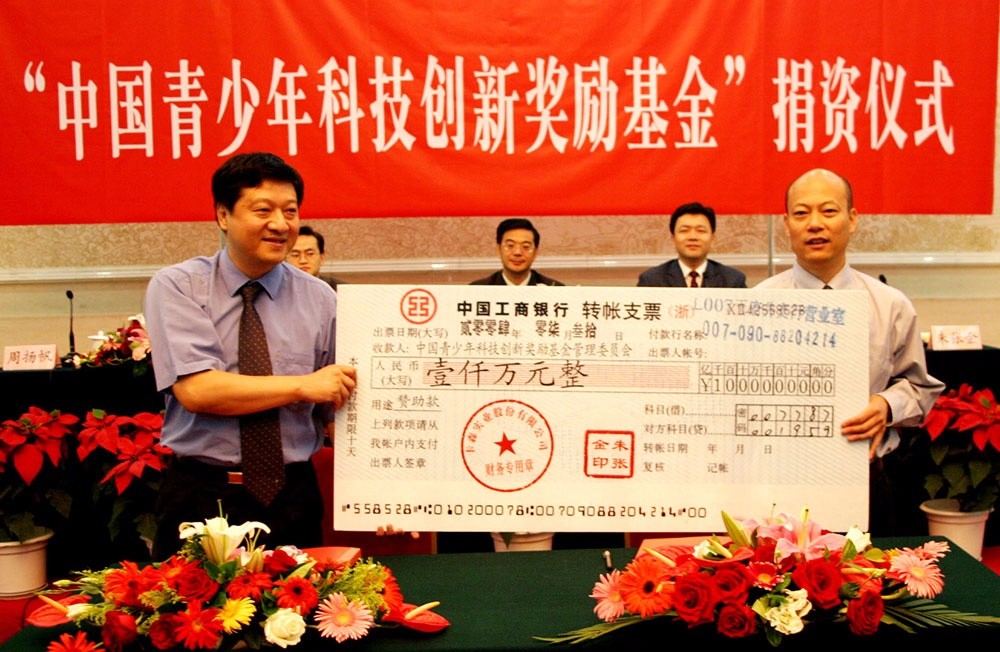 ▲ 2004年,向根據(jù)鄧小平同志遺愿設(shè)立的“中國(guó)青少年科技創(chuàng)新獎(jiǎng)勵(lì)基金”捐贈(zèng)1000萬元;